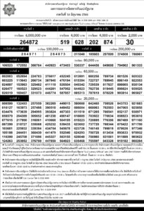 หมายเหตุ : โปรดตรวจสอบความถูกต้องกับสำนักงานสลากกินแบ่งรัฐบาลอีกครั้ง