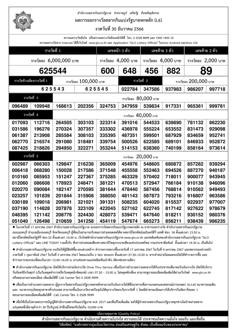ใบตรวจหวย 30 ธันวาคม 2566