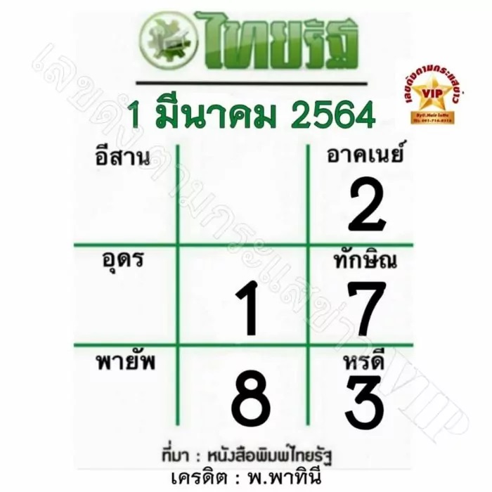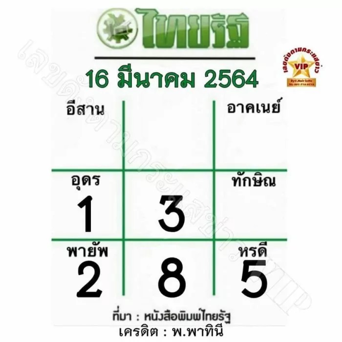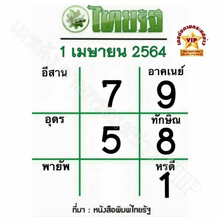 หวยไทยรัฐงวดวันที่ 1/4/64 งวดนี้ ล่าสุด