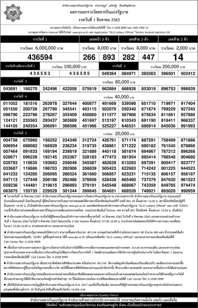 ใบตรวจหวย 1 สิงหาคม 2565