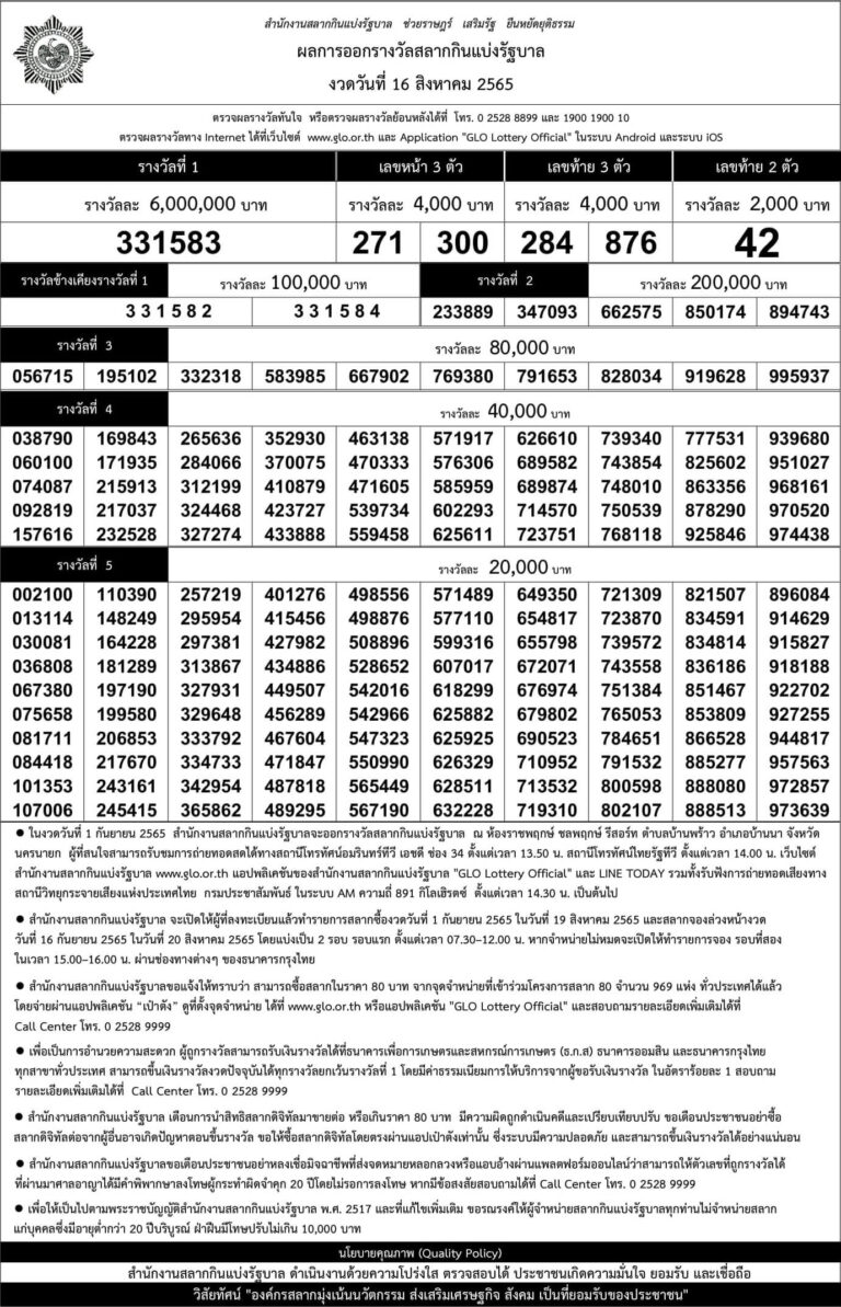 ใบตรวจหวย 16 สิงหาคม 2565